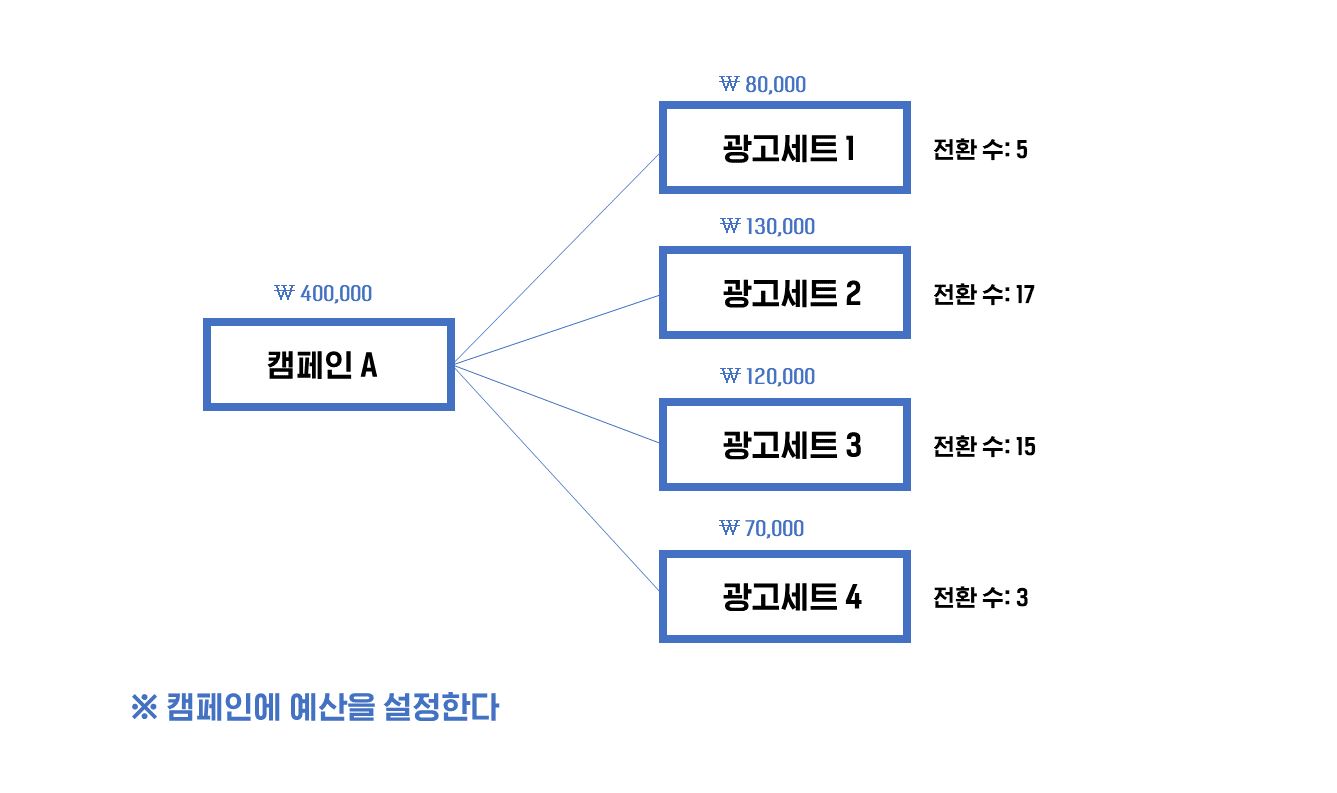 캠페인 생성 시 '캠페인 예산 최적화' 버튼 하나로 결정된다.