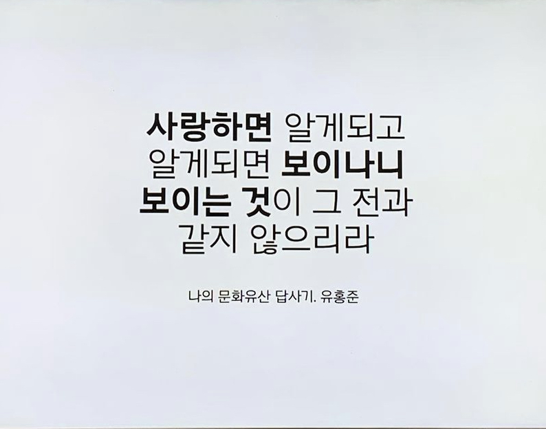 "사랑하면 알게 되고, 알게 되면 보이나니. 그때 보이는 것은 전과 같지 않으리라."