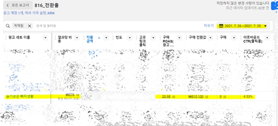 캠페인 기간은 7월 7일~7월 26일이었다. 그날 오전 캠페인이 종료됐다. 그런데 종료 이후 3일간의 데이터가 이 수치를 만들고 있었다.